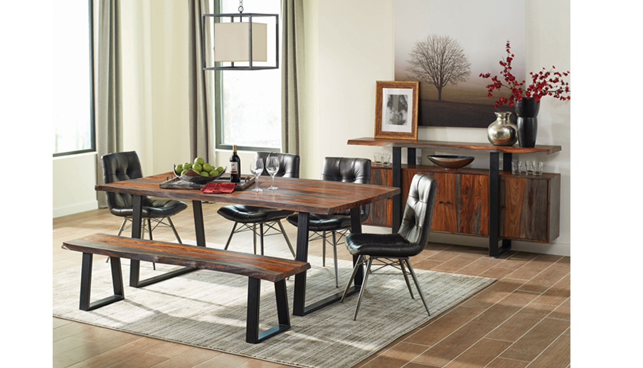 Revel in the light, airy design influence of this wood and metal dining table. Grey sheesham wood finishing ensures a rich, dimensional look perfect to elevate any dining space. A wide rectangular tabletop is perfect for seating six for a scrumptious holiday meal or a leisurely chat over dessert and a nightcap. The base of the table features a pair of metal braces in a black finish that offers lovely contrast. The open nature of the table's base preserves it's open beauty and elegance.