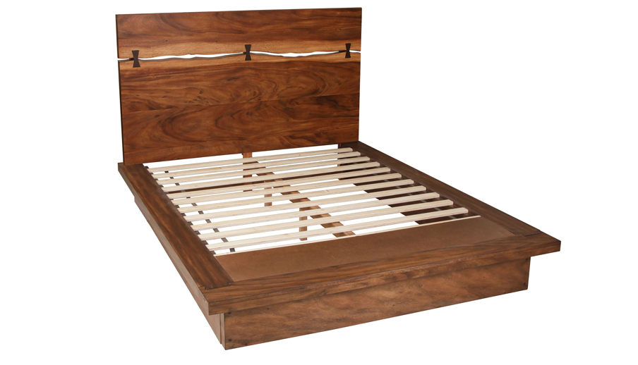 Add an intriguing touch of modern flair to any bedroom. This cool, contemporary queen panel bed has a truly eye-catching design. The top of its headboard is separated from the bottom with a cool, jagged edge and fastened back together with black, bow-shaped brackets. A warm, rich finish of smokey walnut adds classic vibes to its updated silhouette. With strong, sturdy construction, this bed is durable and supportive for a restful night's sleep.